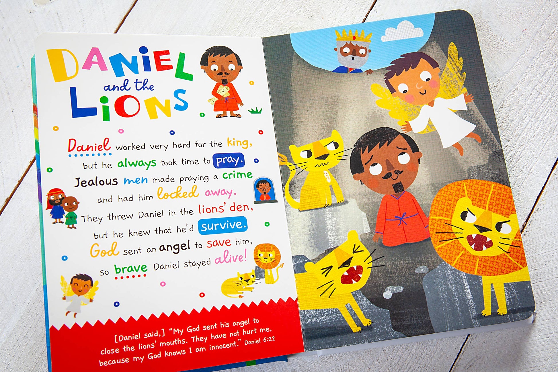 Set sail with Noah, follow Moses through the Red Sea, and marvel at Jesus’ miracles as you read this fun collection of Bible stories together.